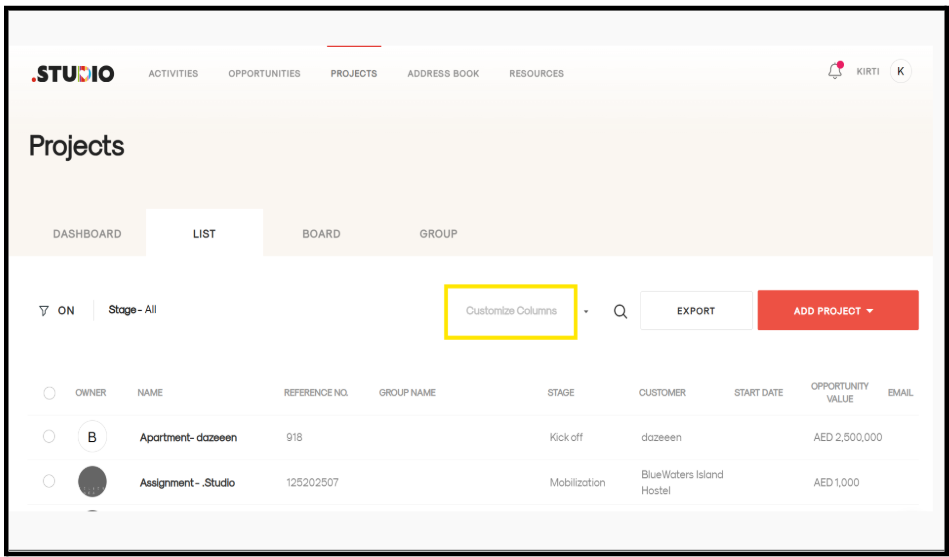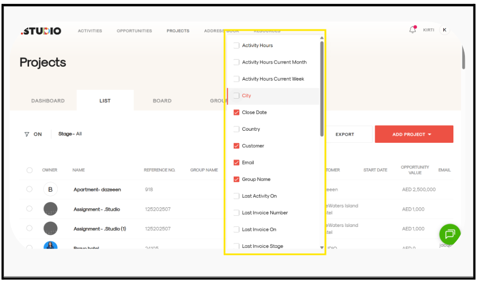 Check the boxes for the columns you want to display and uncheck the boxes for the ones you want to hide.